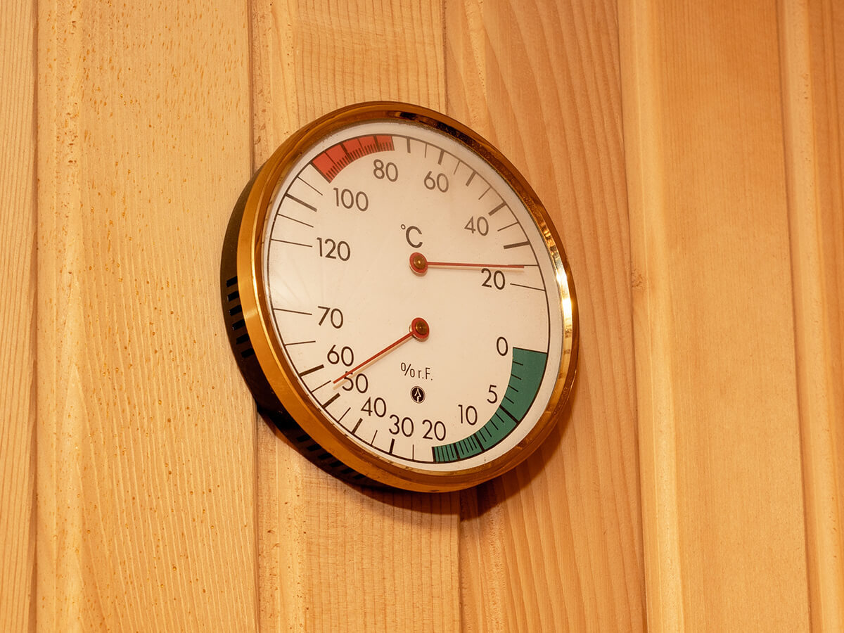 La sauna finlandese raggiunge temperature comprese tra 80°C e 100 °C con un’umidità del 20% circa, è conosciuta infatti anche come sauna secca. L’ambiente all’interno della sauna è in legno con panche poste su più altezze, per sentire più o meno calore a dipendenza del livello. Per scaldare la cabina si utilizza una stufa, solitamente elettrica, ricoperta da pietre roventi che vengono bagnate con dell’acqua per creare umidità.